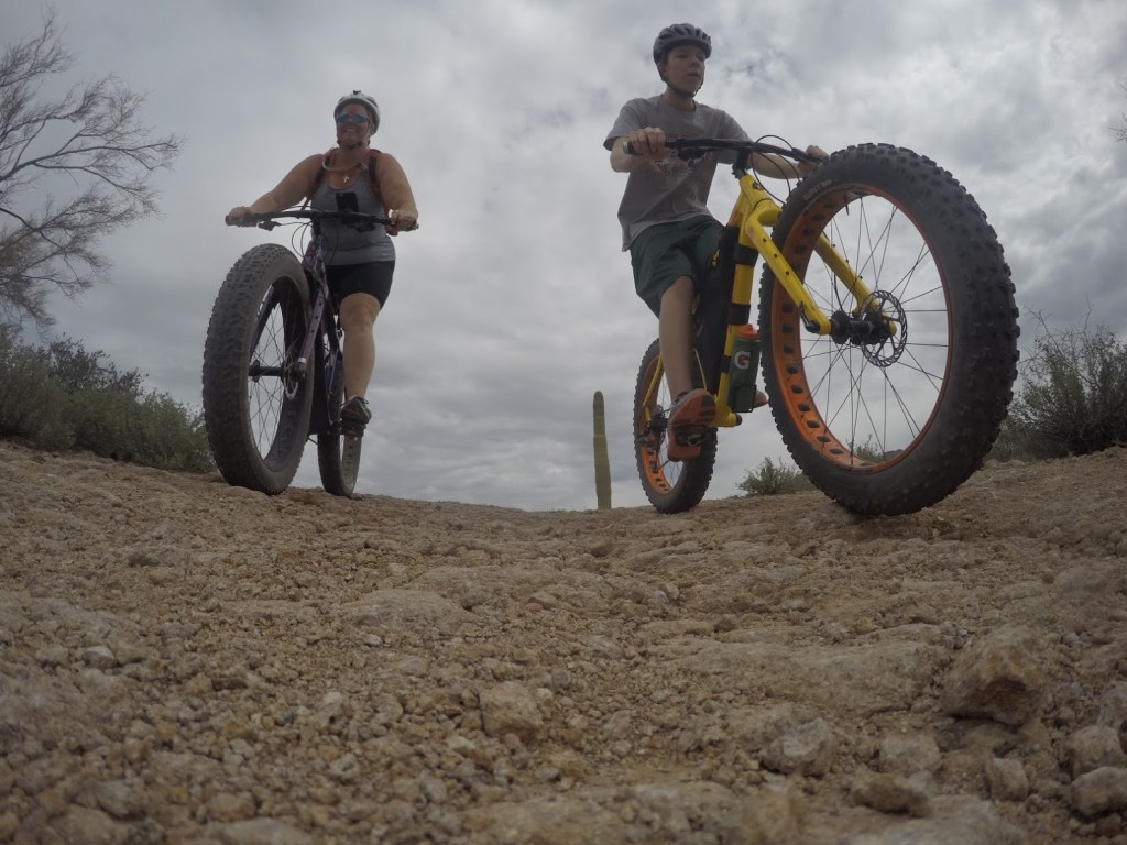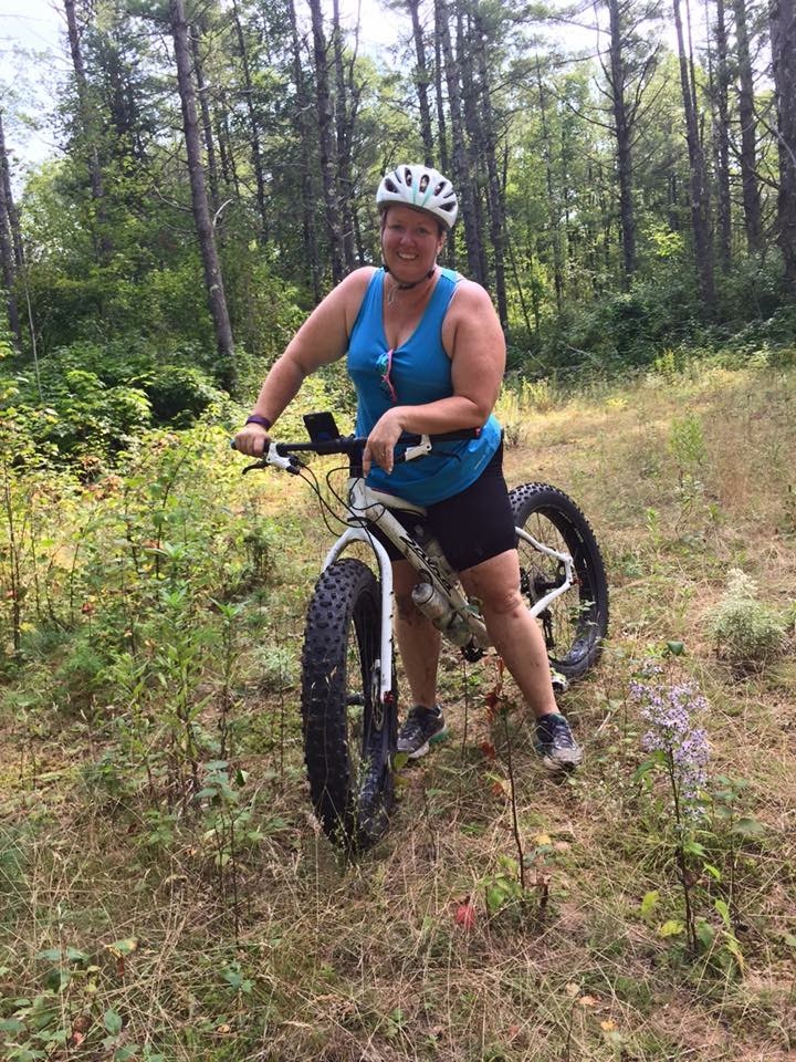 We took my new bike out and tried riding….it was great on pavement BUT quickly I learned that was not my style. I grew up trail riding horses through the mountains and I love trails. When I tried my new bike on a trail, and let’s be honest that’s not where my bike liked to be, I was scared to death of crashing and even more frightened of hills on it. SOOOO we saw a fat tire bike in a shop. “Tell me about that fat tire bike” were the most expensive words ever spoke in our family. My new Salsa Mukluk took me places that I didn’t dream I could go on two wheels. We rode through roots, rocks and water. I took it everywhere!